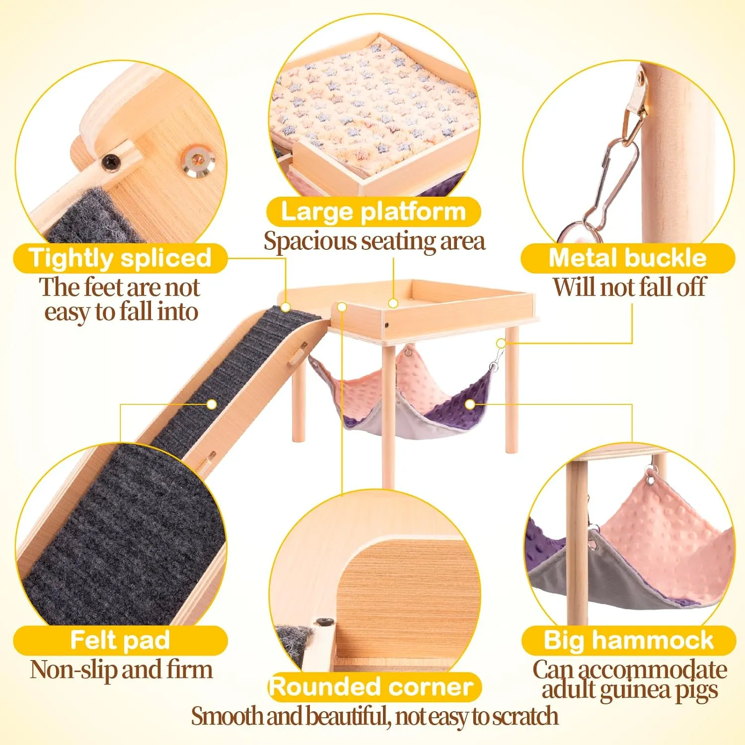 Guinea Pig Hammock – Wooden Hideout with Platform & Stairs